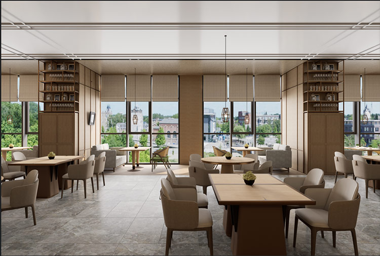 * Šiltos neutralios spalvos: karamelizuoti tonai, kurie dera rausvai rudi su modernumu, tinka nostalgiškai komercinei aplinkai sukurti.